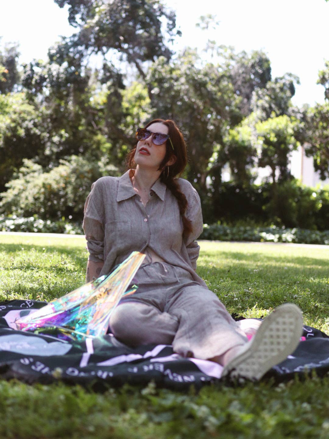Every witch deserves a safe space to practice their craft. We’ve dreamed up our Traveling Spell Space, a portable, multi-functional way to your rituals. Throw it in the complimentary tote bag to be used as a beach towel, for camping trips, or festivals- it can even be a rug for a child’s room. A protective spell surrounds the border, written simply for ease of use with many different styles of witchcraft. Open spaces to place your found objects, candles, crystals, etc. Amazing for beginners and young ones that are learning to visualize their surroundings, or for those of us who are not able to display a home altar.