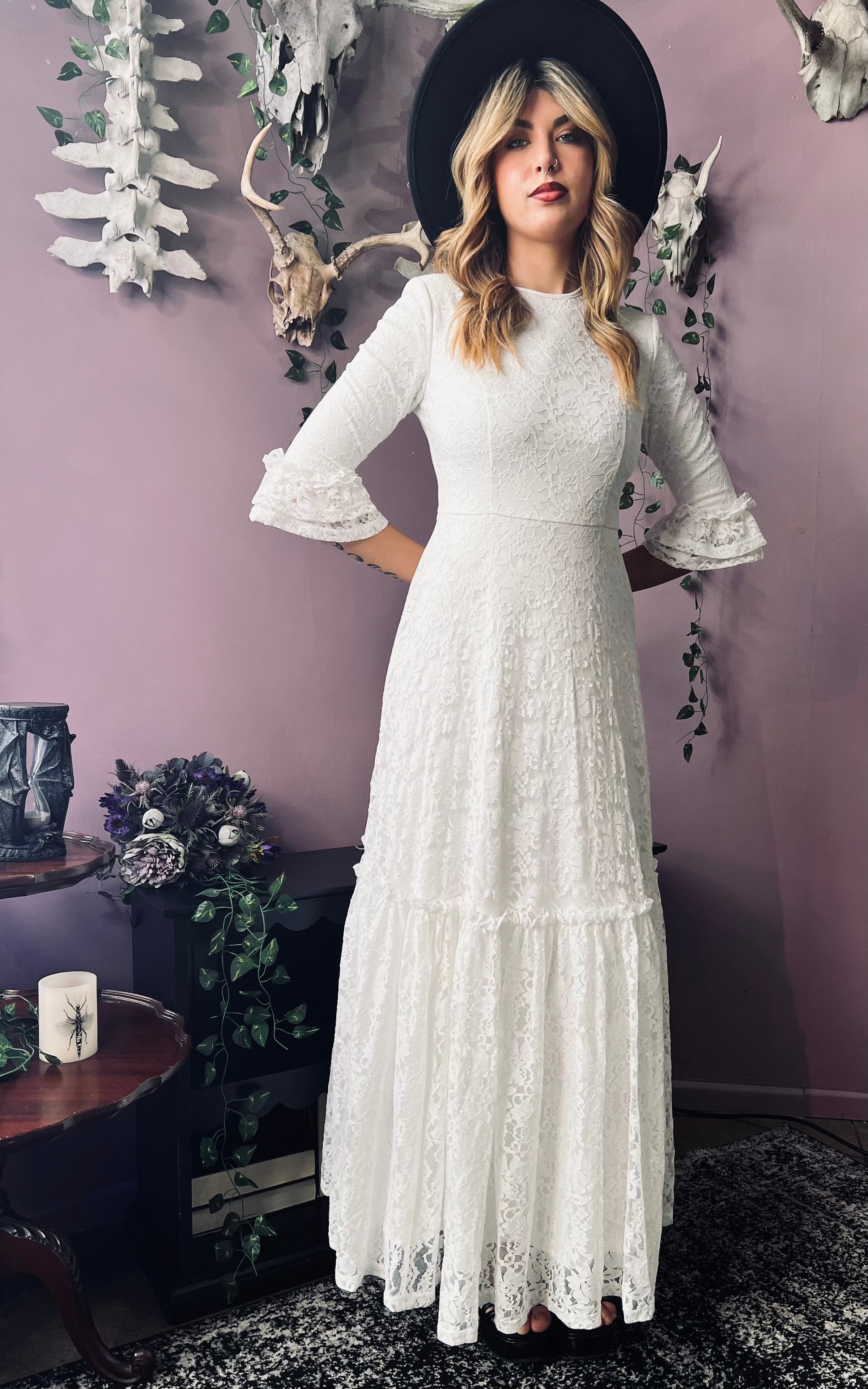 Mina - Ivory Floral Lace Bride of the Vampire Maxi Dress - READY TO SHIP