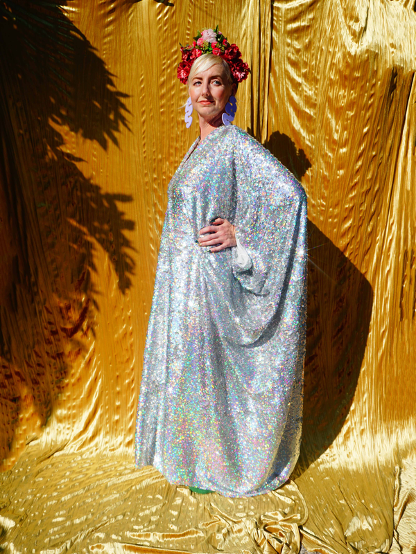 Holographic Blue, Green Mermaid, Matte Black Sequin Kaftan