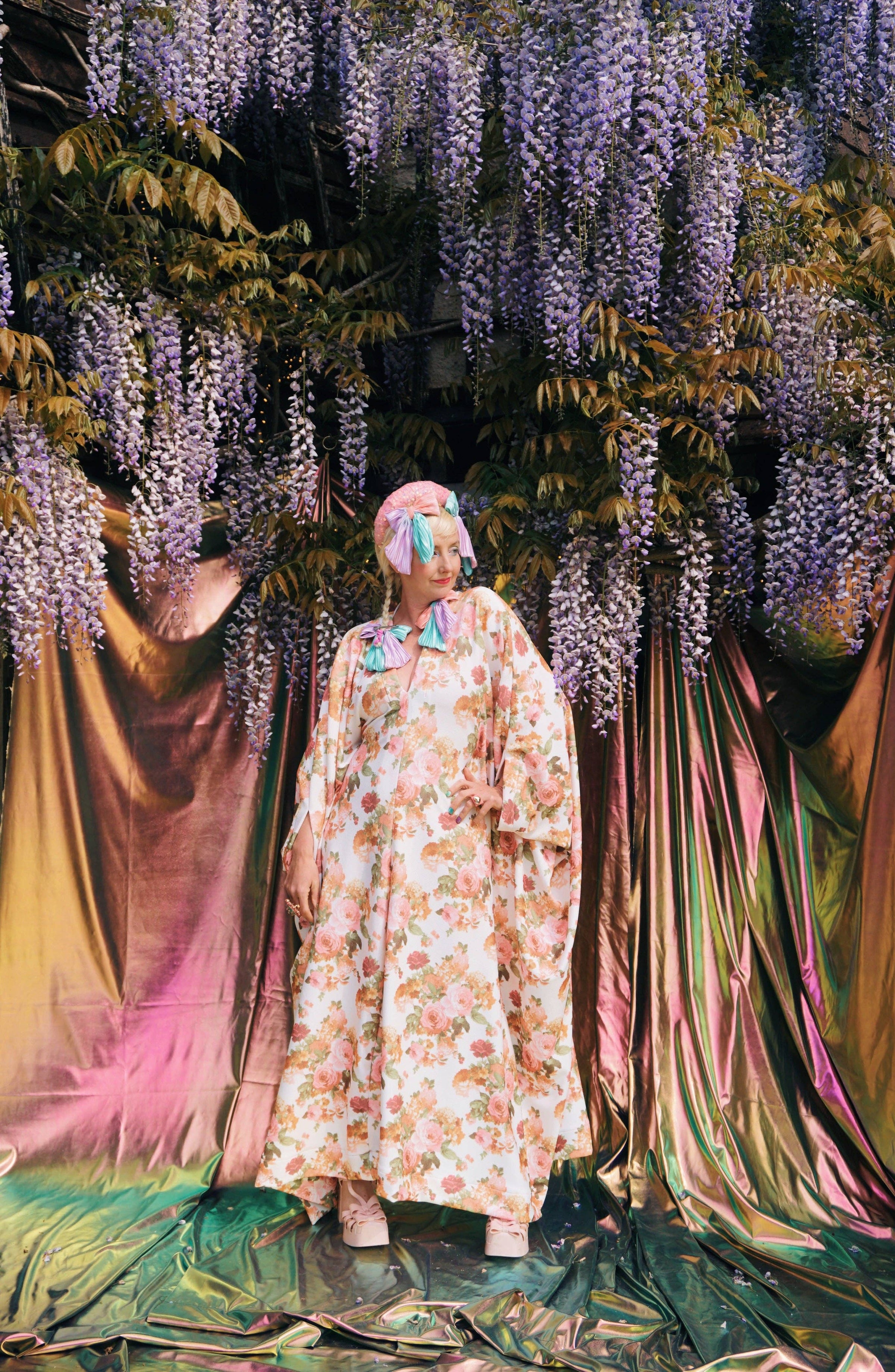 Pink Rose Garden V-Neck Kaftan Gown.