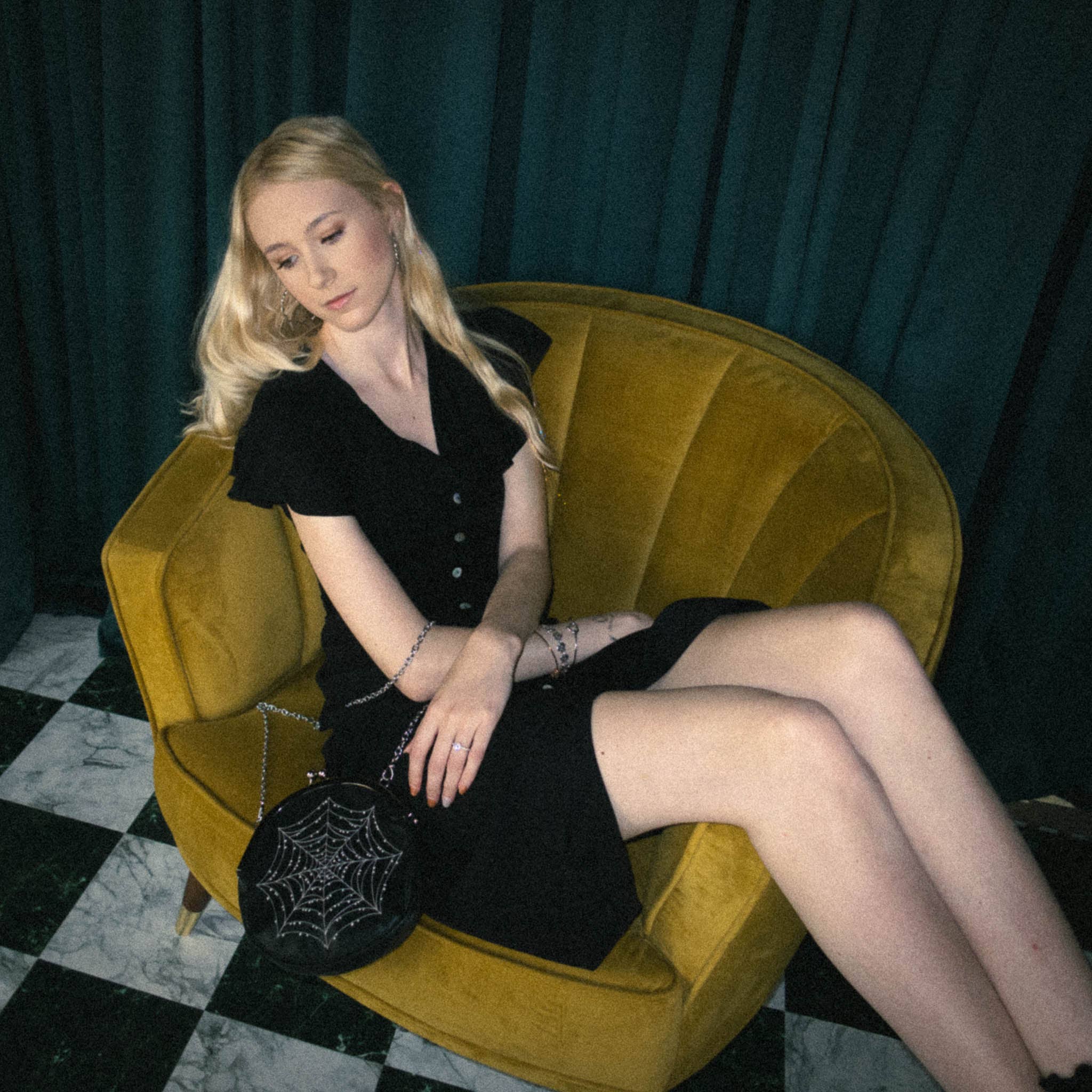 This elegant purse weaves vintage allure with gothic mystique. Crafted from black vegan leather, it provides the perfect canvas for intricate white spiderweb embroidery, adorned with dew drops. While it won't ensnare any insects, it's sure to capture you plenty of compliments! Also available in bone and cognac.