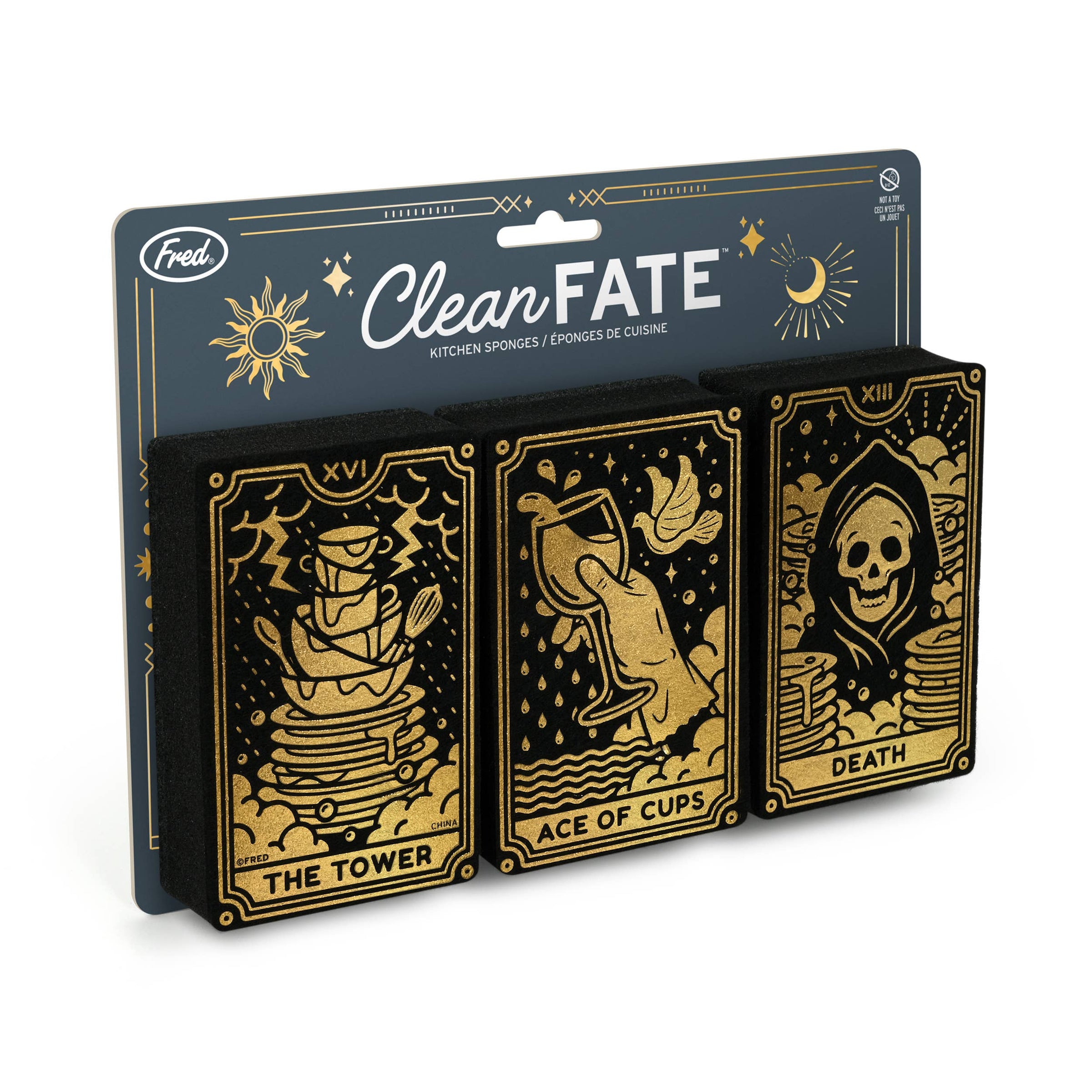Fred’s Clean Fate isn’t just a sponge set—it’s a cleansing ritual. Each tarot-inspired sponge is adorned with shimmering gold illustrations and infused with cosmic cleaning energy. Measuring about 2.5" x 4", each one features three hardworking layers to clear the path to a cleaner future. Trust the cards, grab a sponge, and embrace your sparkling new beginning. Cleanliness is in the cards. Design by Charlotte Saul, Fred Studio.