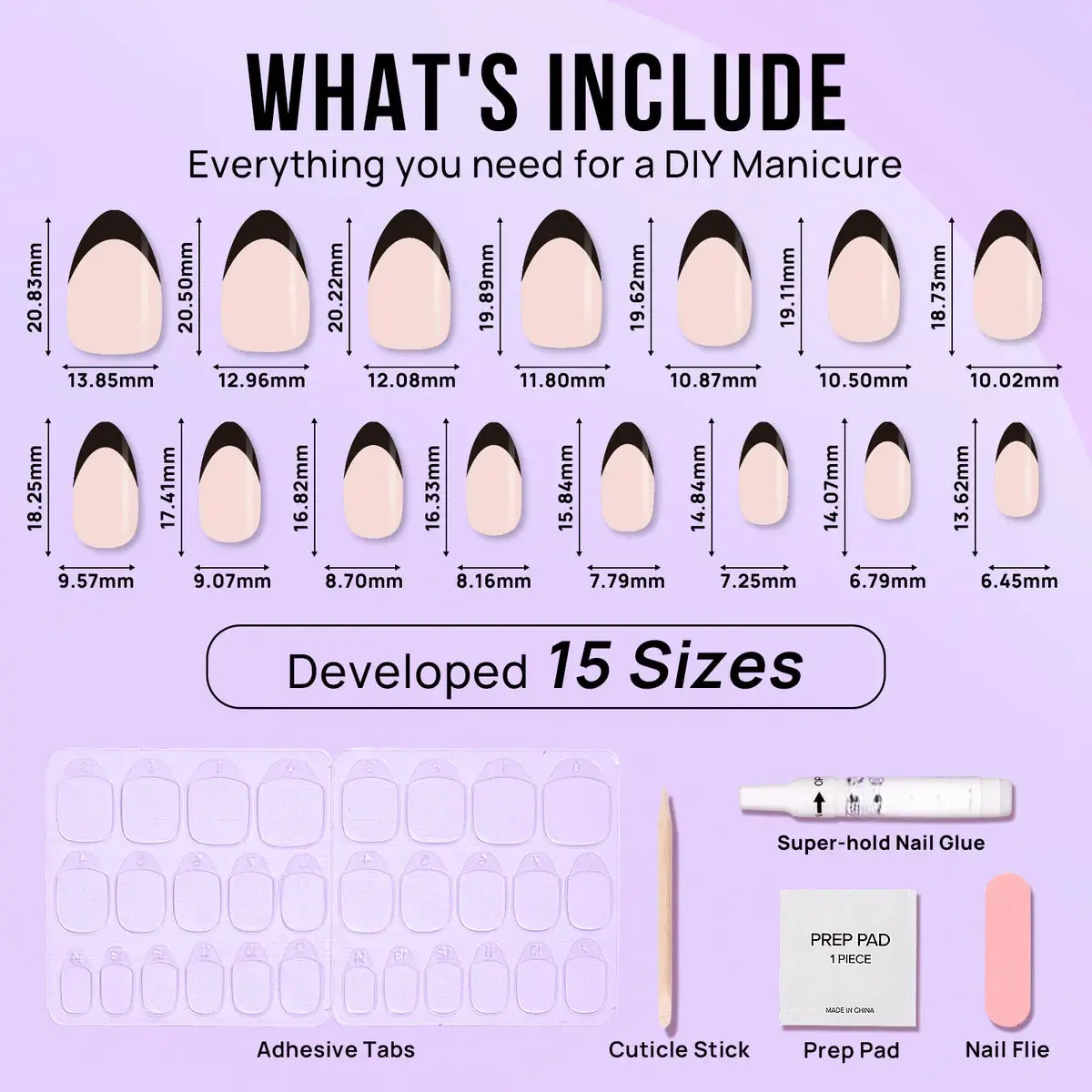Black French Almond Nails - Press On Nails | Long Lasting & Reusable