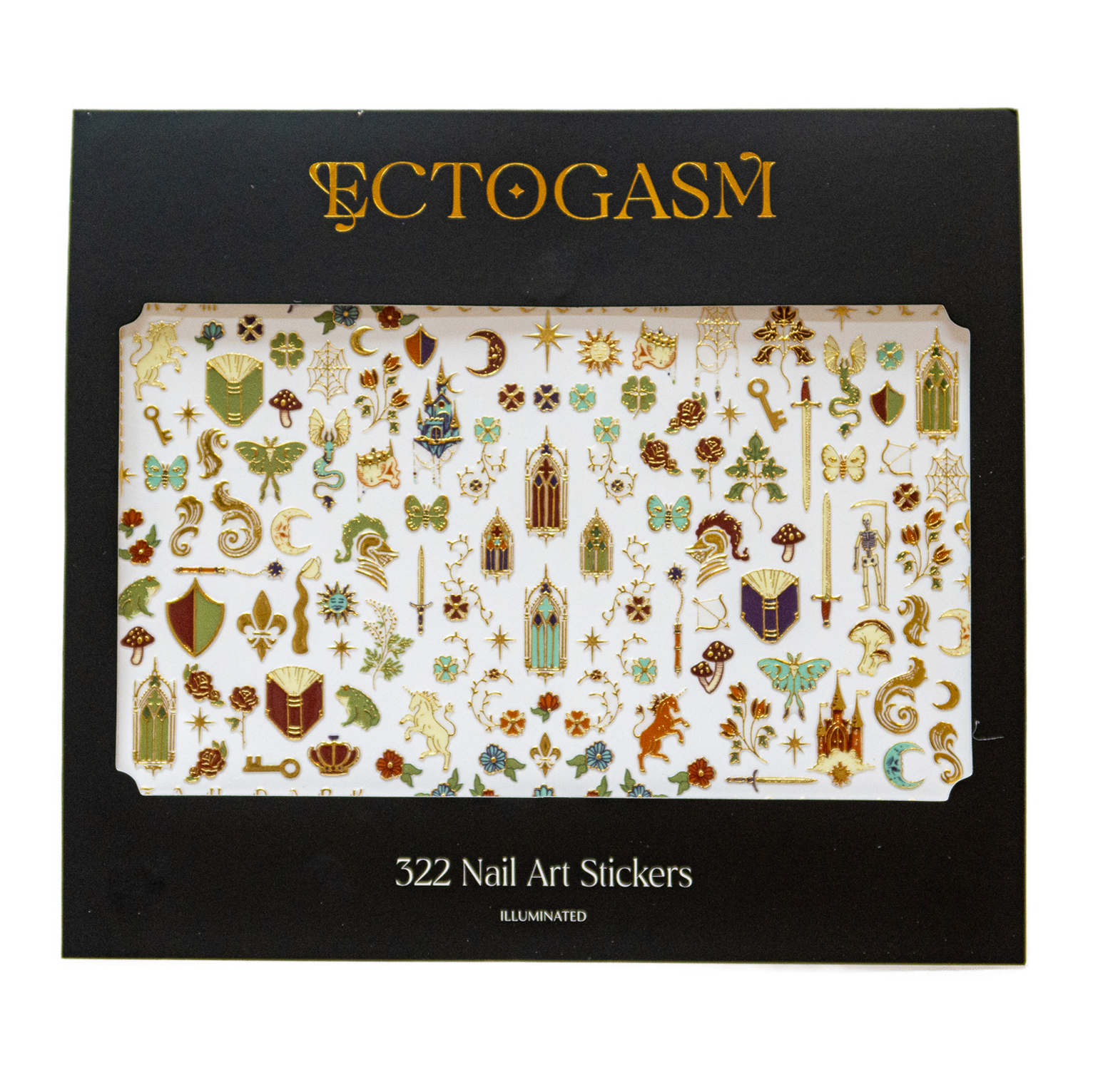 Inspired by the illuminated manuscripts of the medieval era, this unique nail sticker pack features 322 individual stickers and over 50 unique designs. In vibrant colors with metallic gold foil, they will help you easily create incredible manicures.