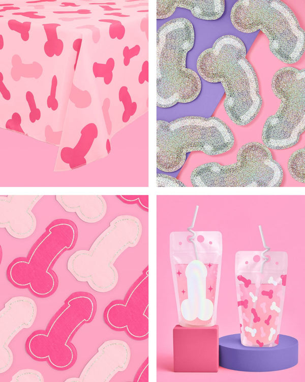Same Penis Table Pack - plates, napkins, drink pouches + tablecloth