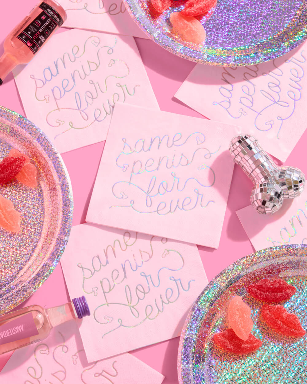 A napkin that looks like it belongs at the Bridal Shower, but once grandma gets her glasses.. it's game over. Pair with our equally cheeky Same P*nis Forever koozies, and we call that a surprise party.