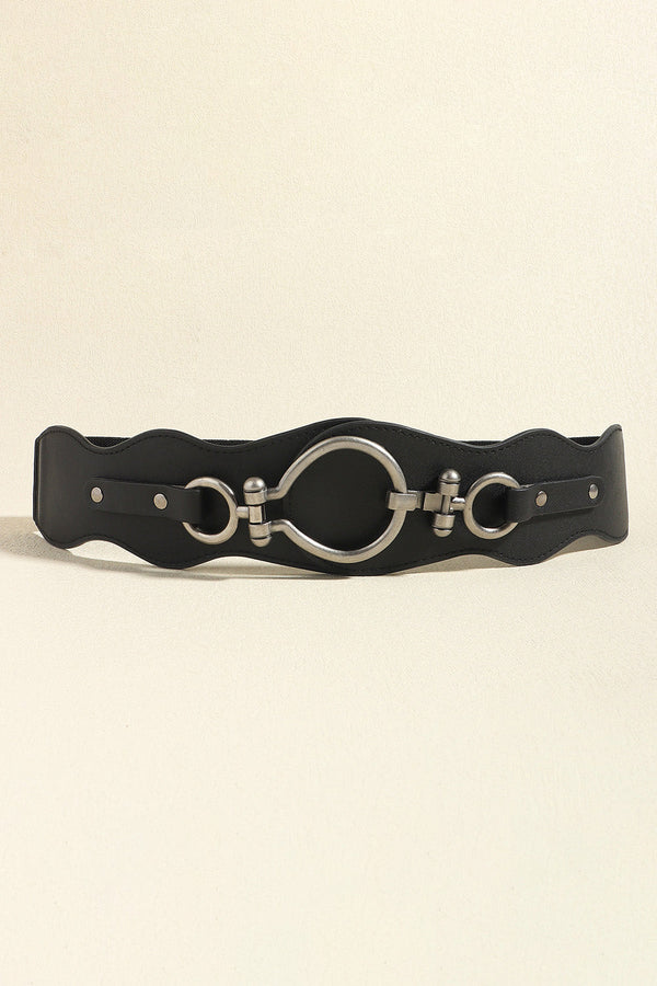 Shell Double Buckle Elastic Wide Belt