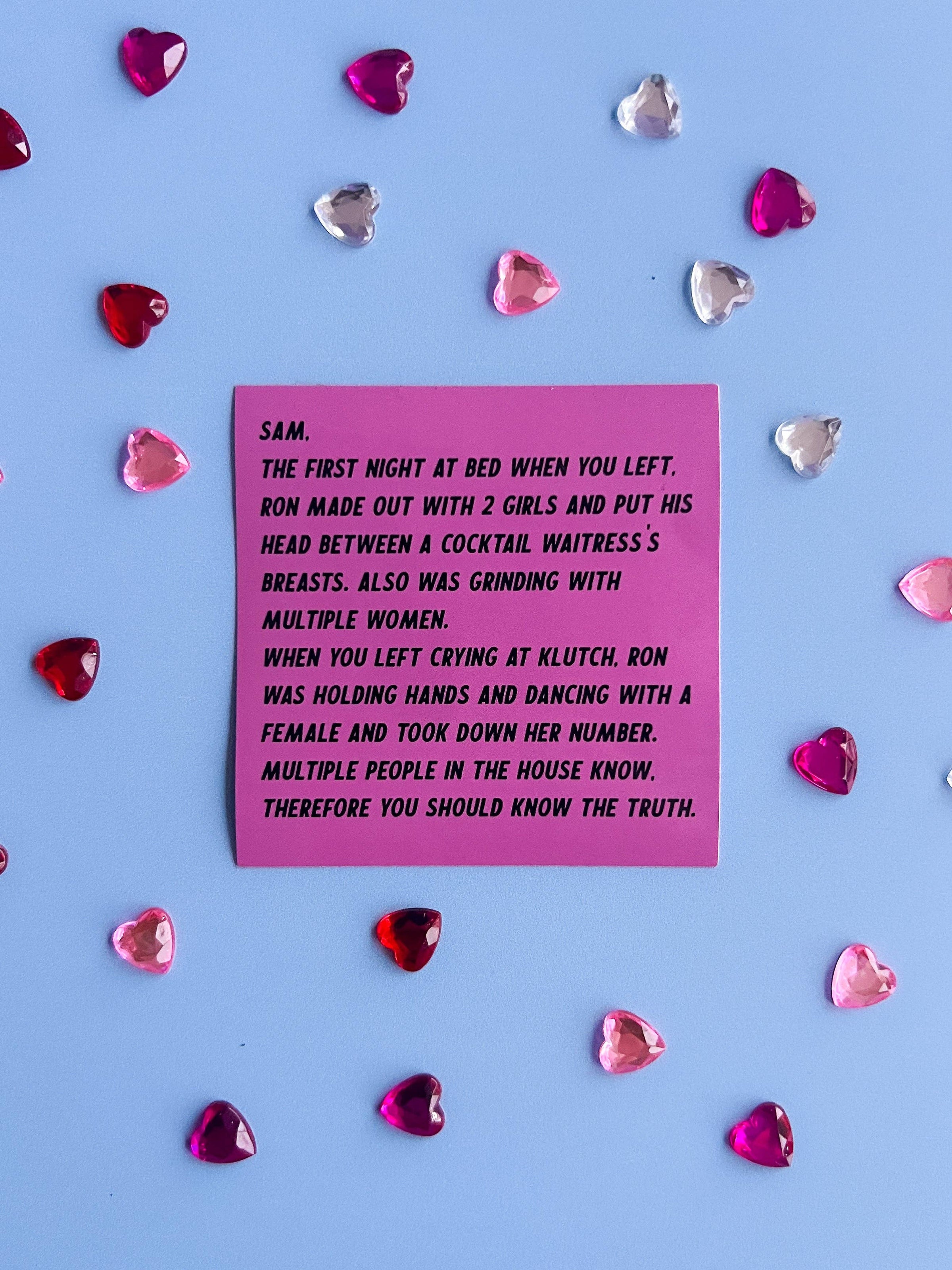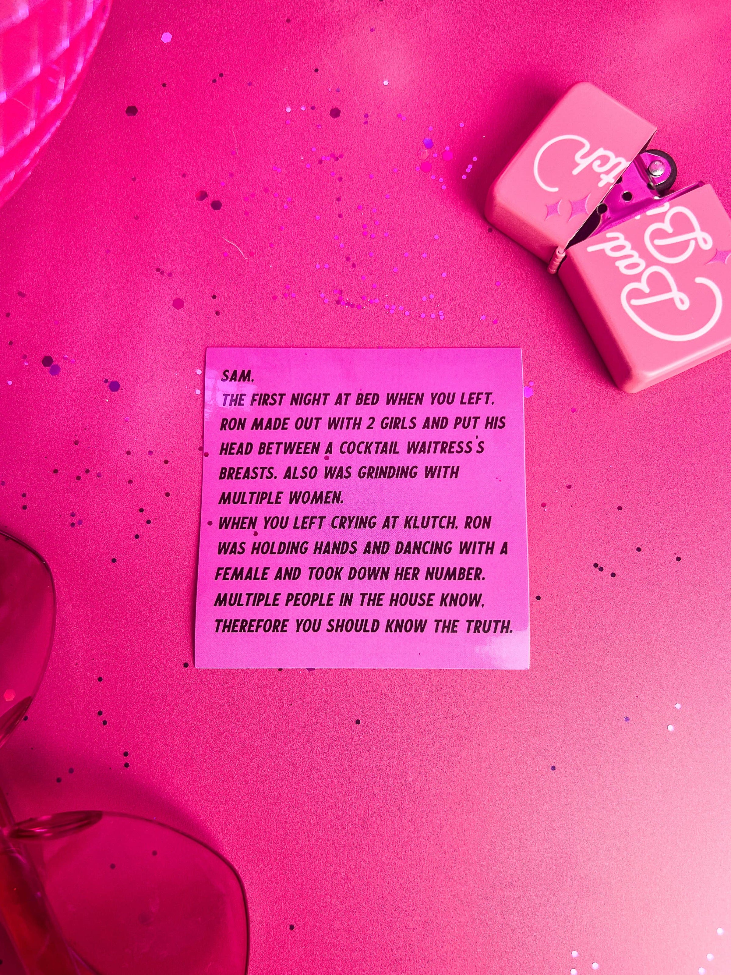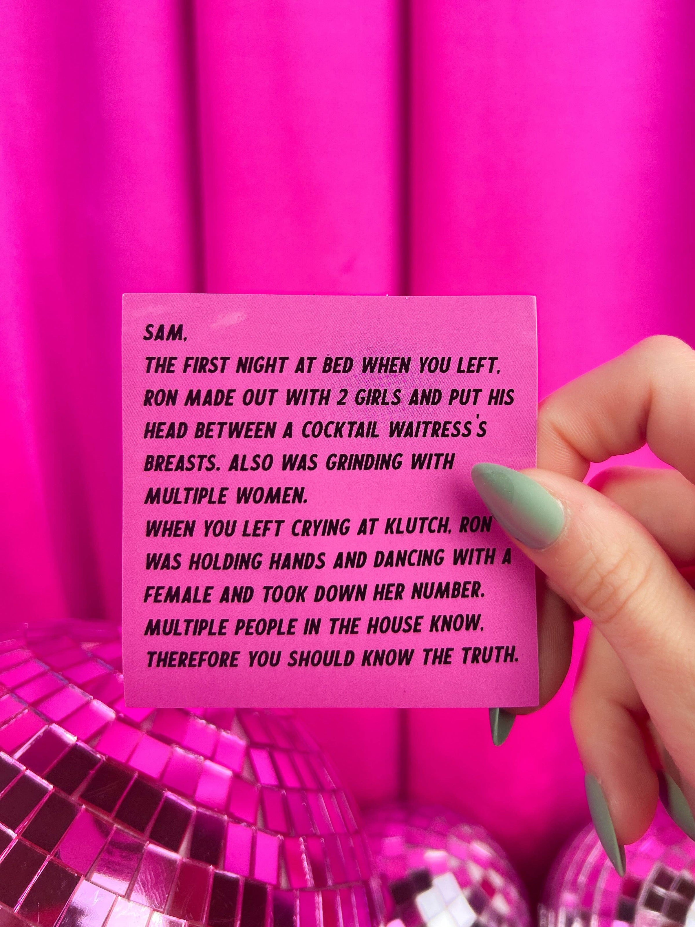 This sticker features an anonymous letter from JWoww and Snooki to Sammi.